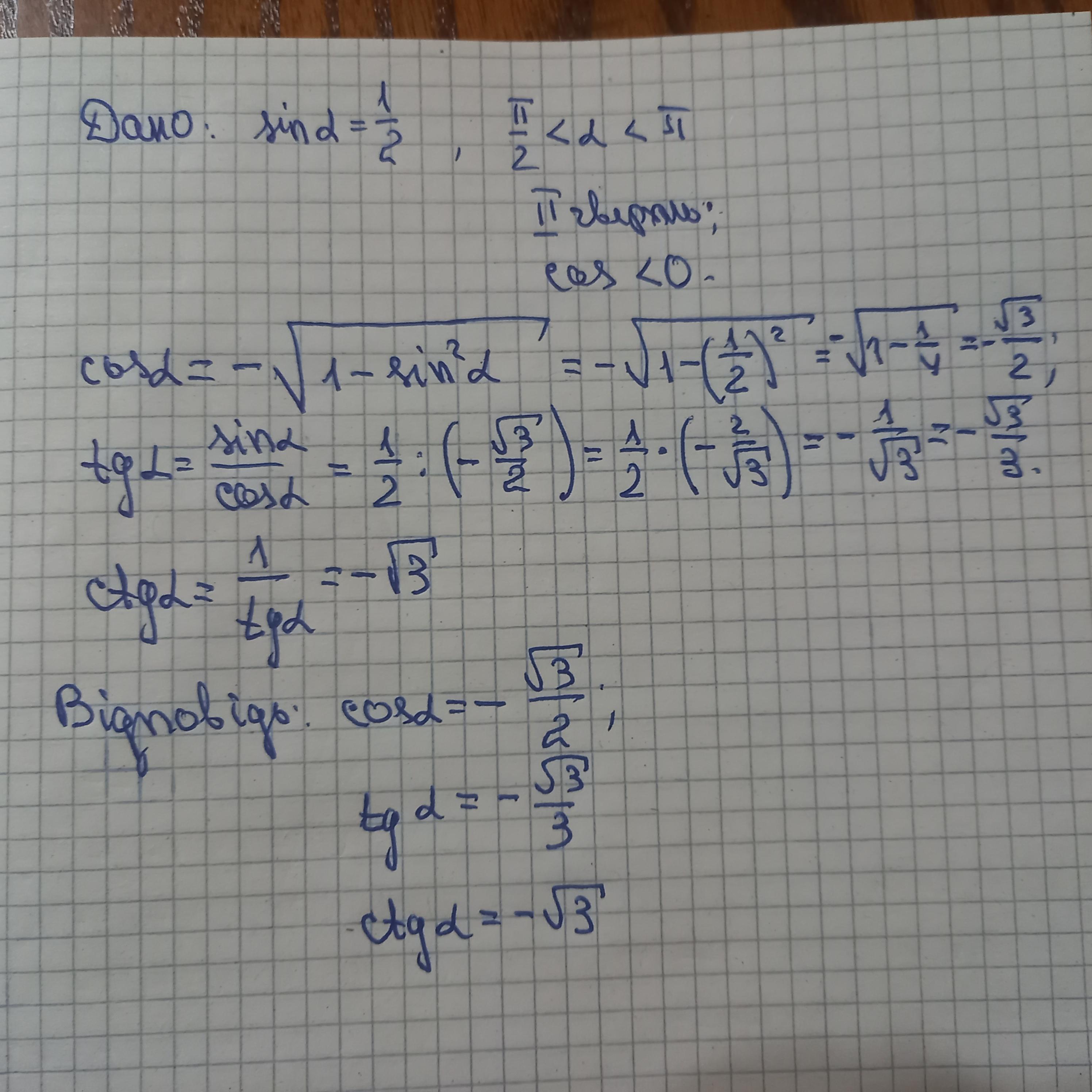 В умові написано , яка чверть. Друга. А в другій чверті соs, tg, ctg набувають від'ємного значення.