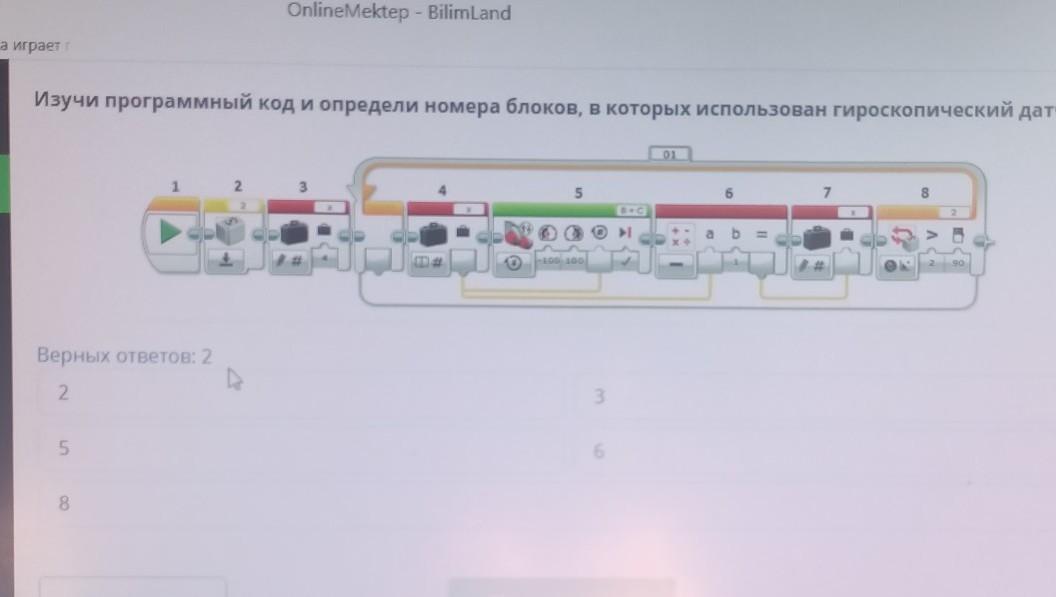 Изучи програмный код и определи номера блоков ,в которых использован гироскопический датчик -2 и 6