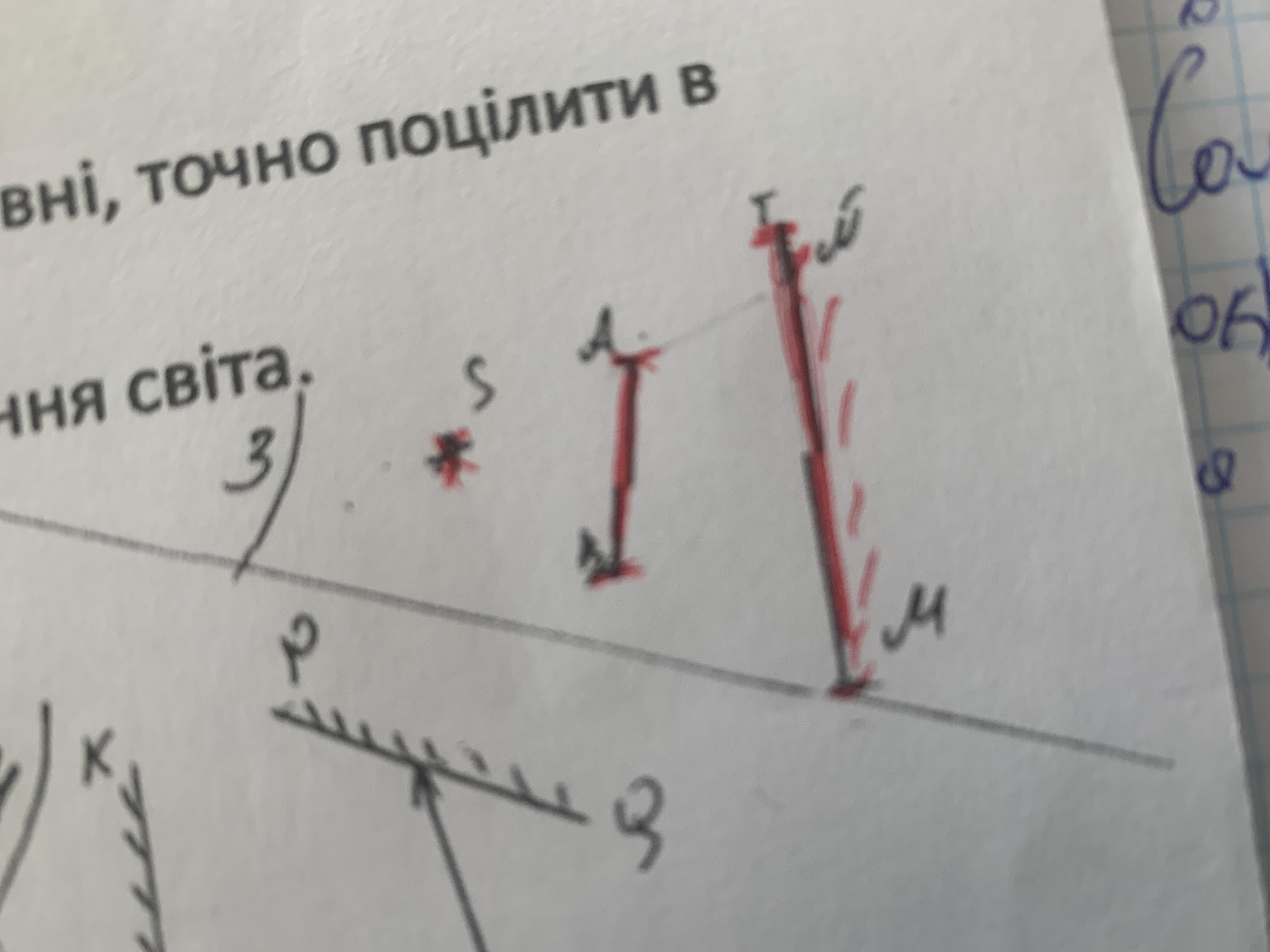 Шляхом побудови покажіть утворення тіні від предмета АB на екрані MN у випадку освітлення його джерелом світла S