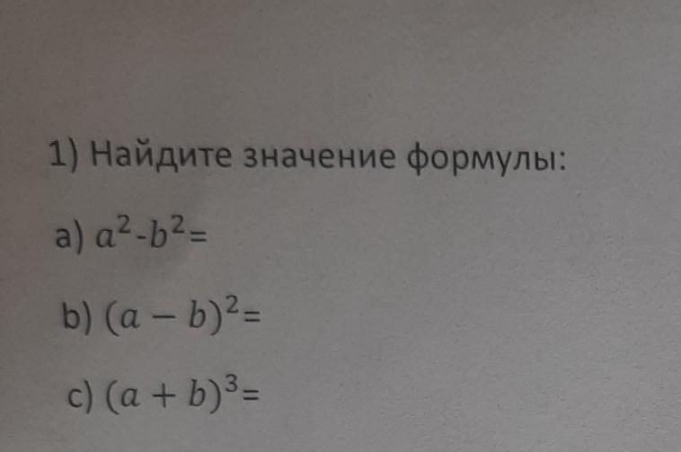 1) Найдите значение формулы: a) a²-b2= b) (a - b)2= c) (a + b)3=