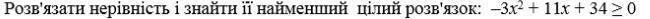 РОЗВ'ЯЗАТИ НЕРІВНІСТЬ ТА ЗНАЙТИ НАЙМЕНШИЙ ЦІЛИЙ РОЗВ'ЯЗОК.ТОМУ ХТО ДОПОМОЖЕ 100 БАЛЛІВ 5 ЗІРОК І СПАСИБІ.