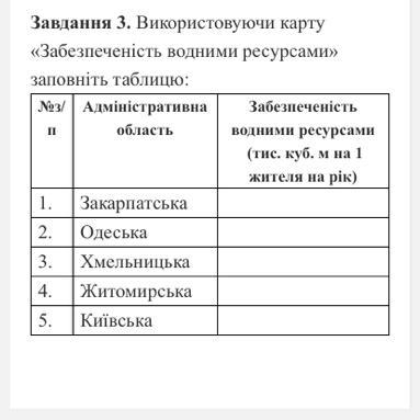 1. Закарпатська: від 3 до 7 тис. куб. м на 1 жителя на рік(більше середнього);