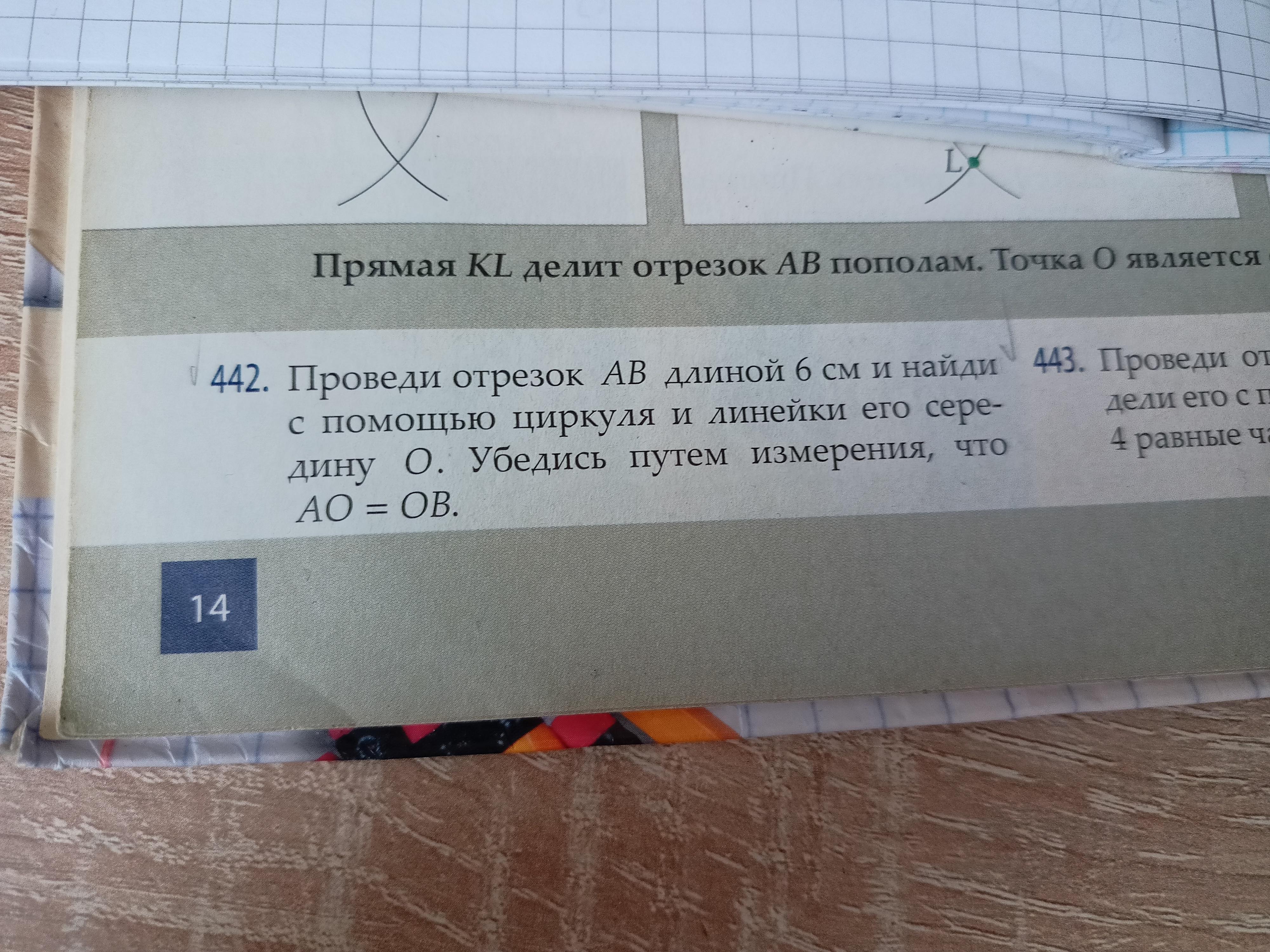 Ответ: рисуешь отрезок АВ (6 см.) Далее отмечаем точку О (середина отрезка, АО = 6:2 = 3см. Теперь "раздвигаем" циркуль на линейке на 3 см, ставим ого в точку О и проверяем (крутим циркуль), получается, что отрезки АО=ОВ