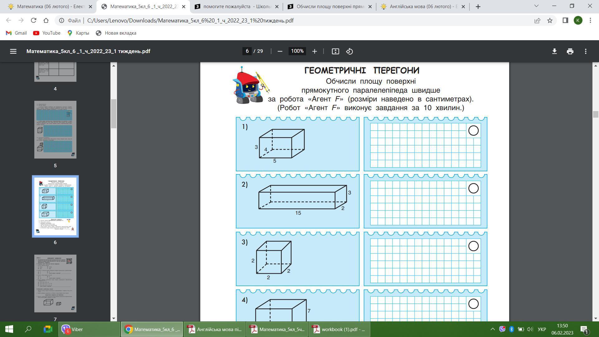 Ответ: S = 2×(3×4+3×5+4×5)= 94 (см) Там іще зверху над см повинна бути цифра 2, але я не знаю як позначити її з планшета. Це буде значити що сантиметри в квадраті