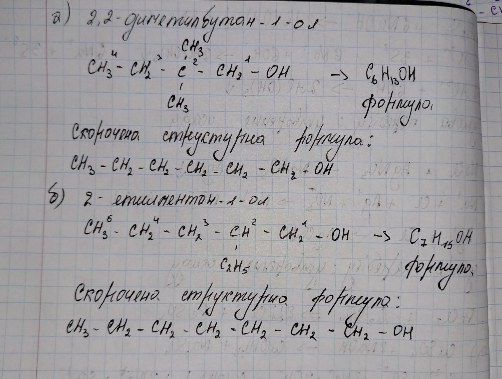 4. Складіть скорочені структурні формули спиртів А) 2,2-диметилбутан-1-ол; за їхніми назвами: Б) 2-етилпентан-1-ол.