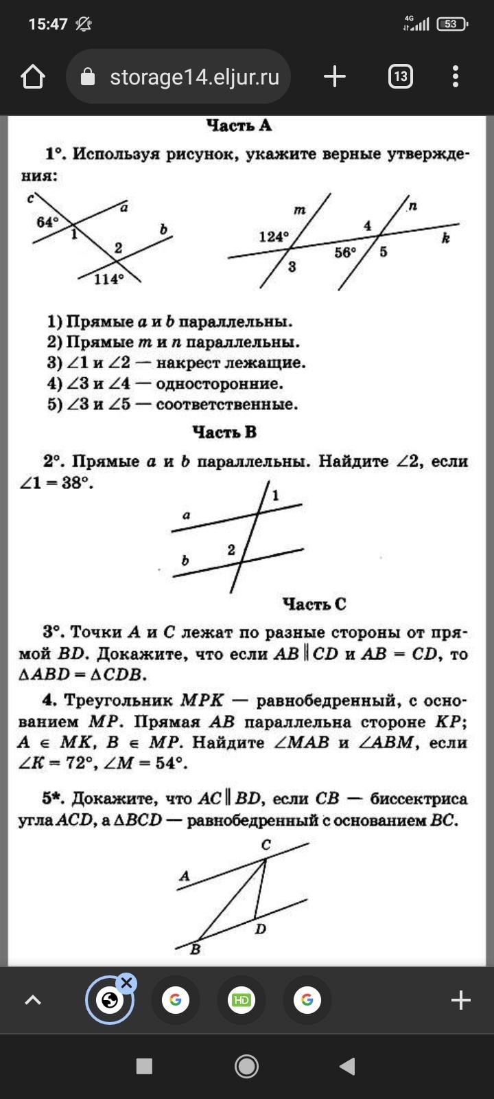 Так как нам известен угол 1 ,мы можем сказать ,что угол 1 и угол 3 ( угол 3 это тот угол, который находится рядом с уголок 2) соответственные ,что делает их равными.