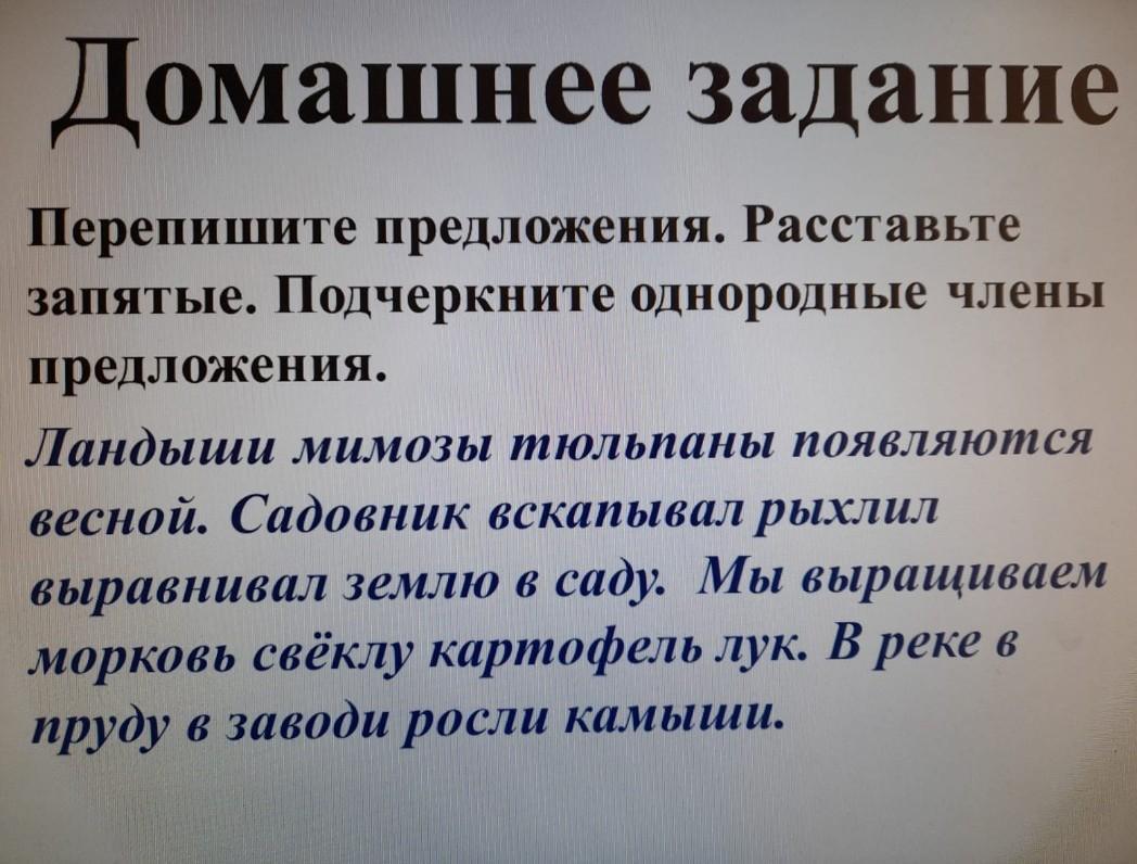 Ландыши , мимозы , тюльпаны появляються весной.Садовник вскапывал , рыхлил , выравнивал землю в саду. Мы выращиваем морковь , свёклу , картофель , лук . В реке , в проду , в заводи росли камыши,