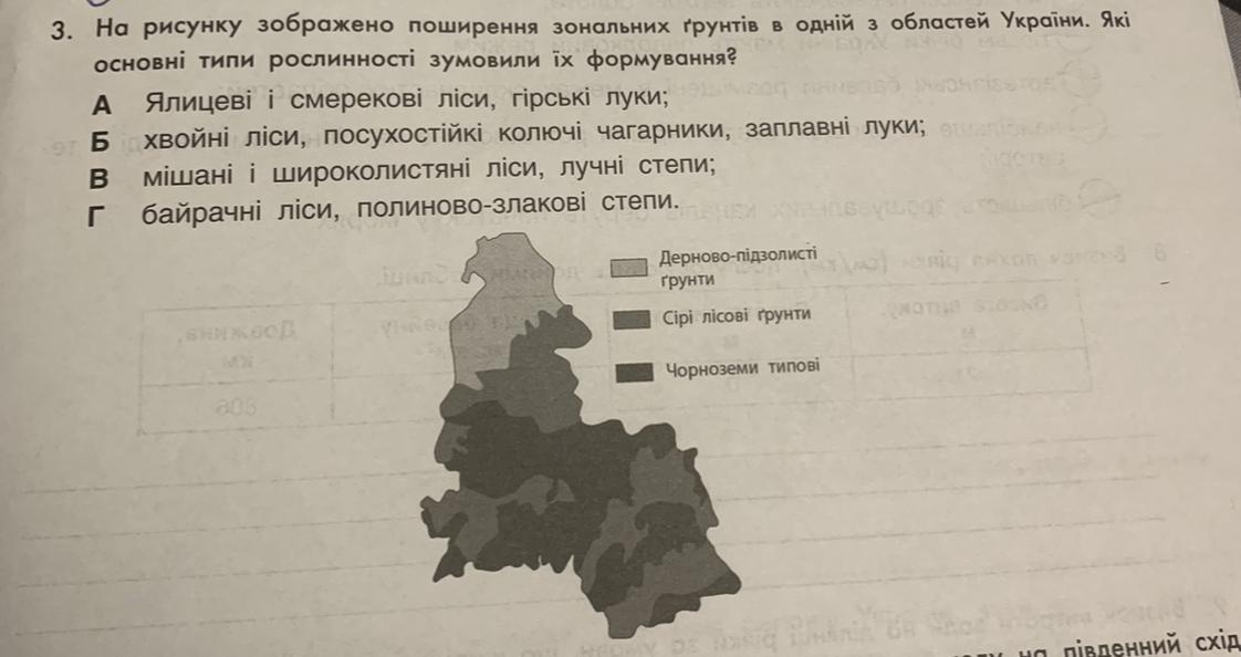 Б- Хвойні ліси, посухостійкі, колючі чагарники, заплавні луки.