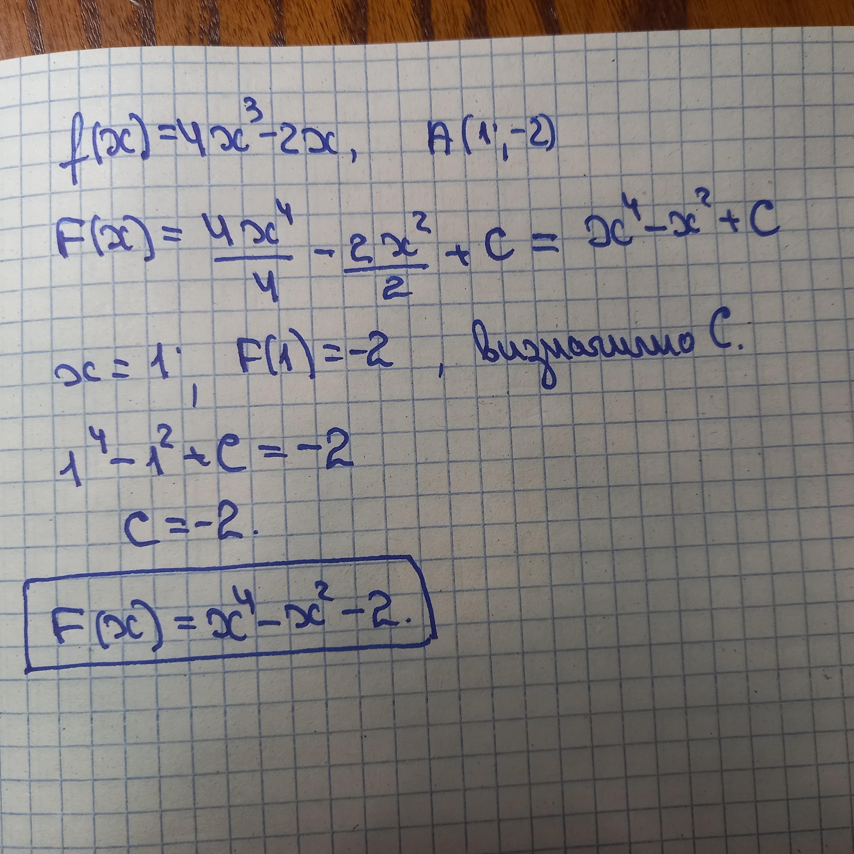 первісну F(x) ,графік якої проходить через вказану точку,якщо: f(x)=4x^3 -2x , А(1;-2)