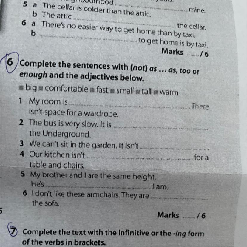 6 Complete the sentences with (not) as ... as, too or
