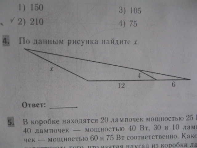 На рисунке проведена прямая параллельная одной из сторон треугольника, значит маленький треуг. подобен большому( по 1 признаку подобия)