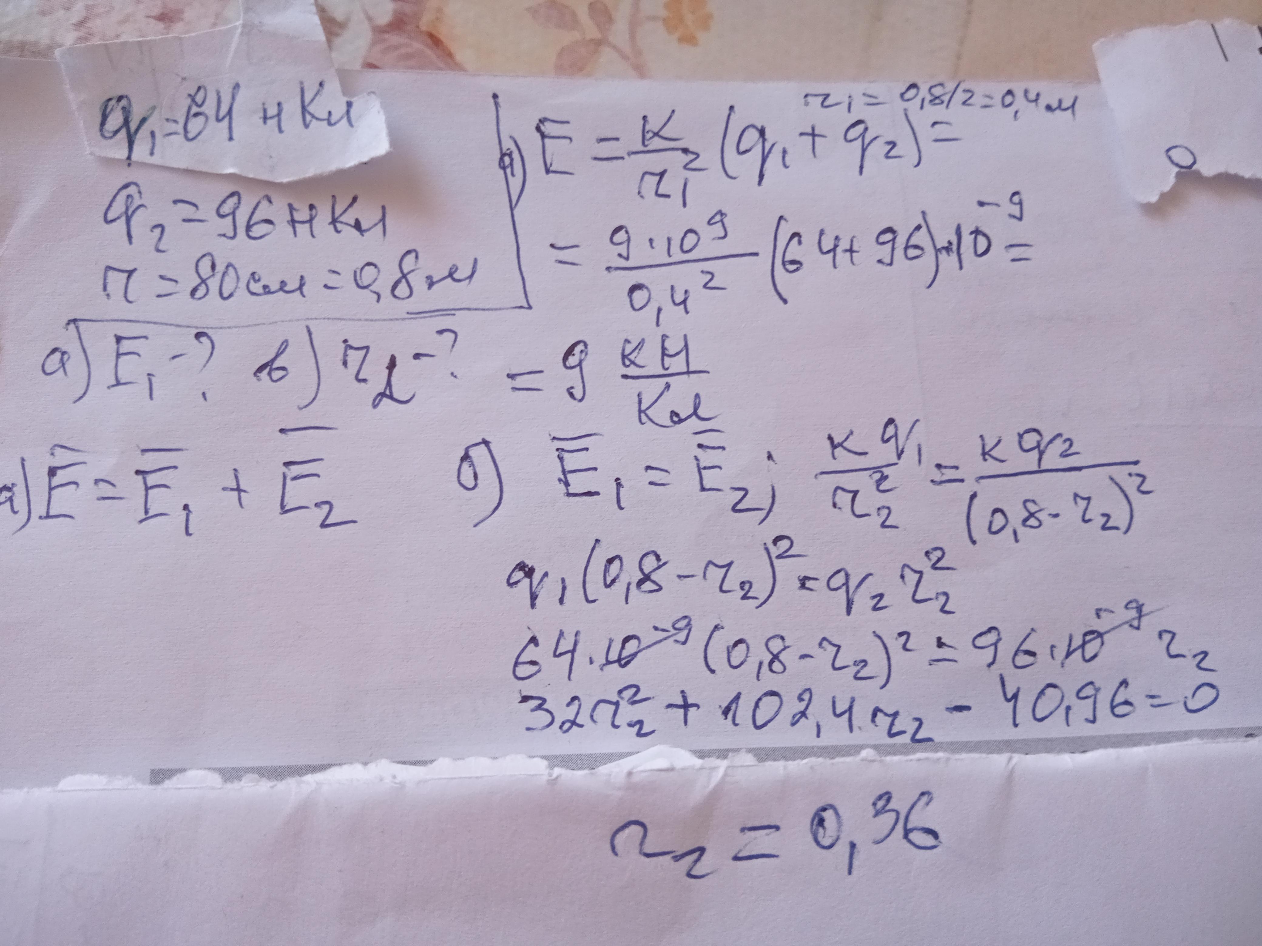 Заряды q1 = 64 нКл и q2 = 96 нКл находятся на расстоянии 80 см друг от друга. Определите: