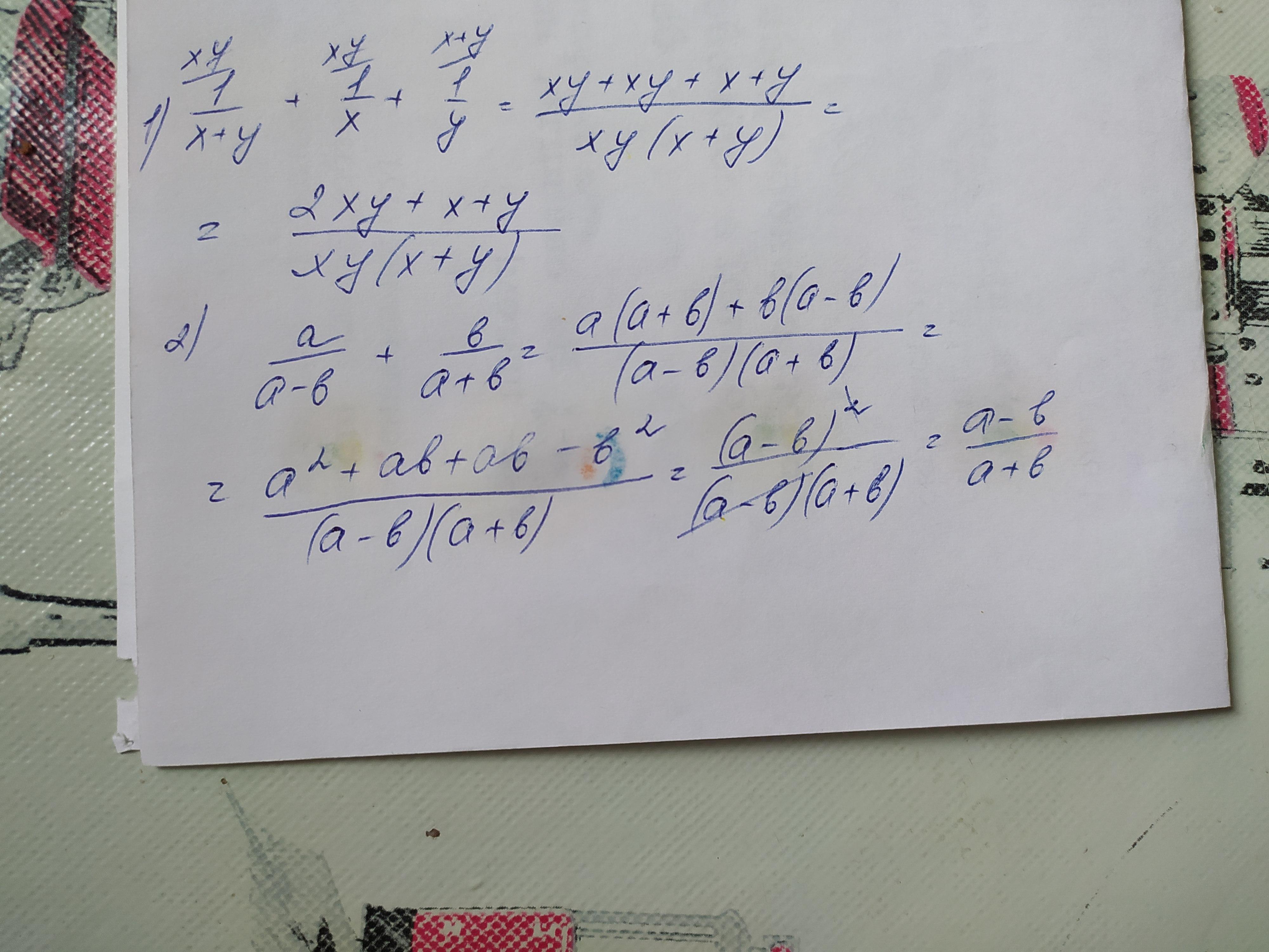 1/ x+y + 1/x + 1/y 2)a/a-b + b/a+b