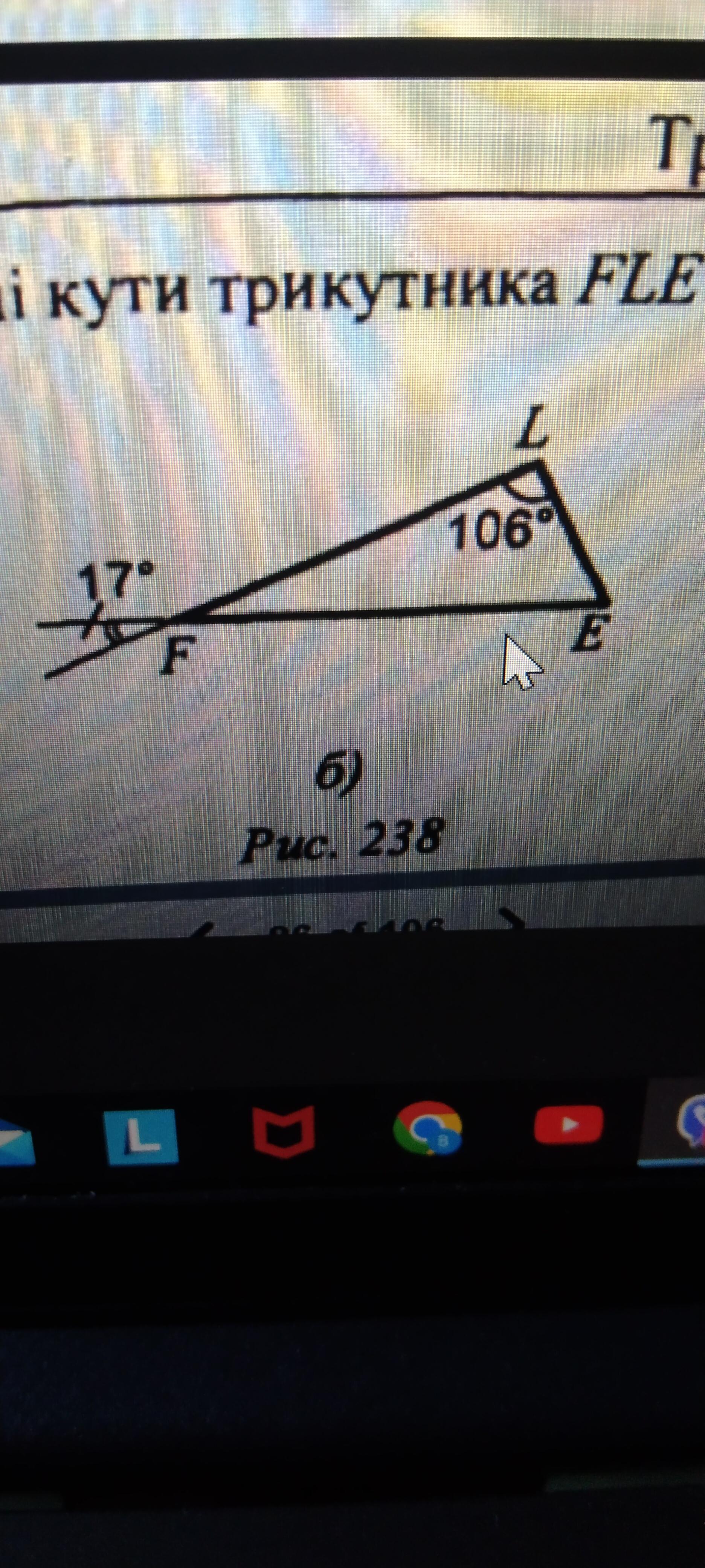∠FEL=180-∠LFE-∠FLE=180-17-106=57°