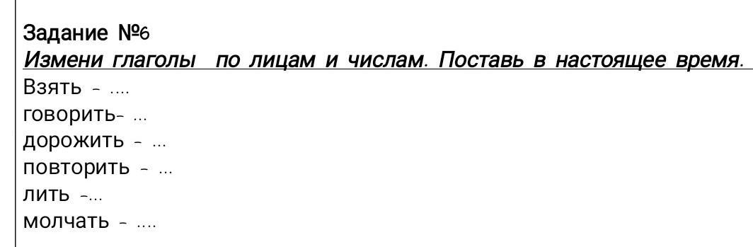 Измени глаголы по лицам и числам . Поставь в настоящее время.