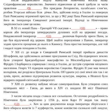 Всесвітня історія, 7 клас. Потрібно вставити пропущені слова, які позначені цифрами 9-12. Допоможіть, будь ласка!! Віддаю усі свої бали!!