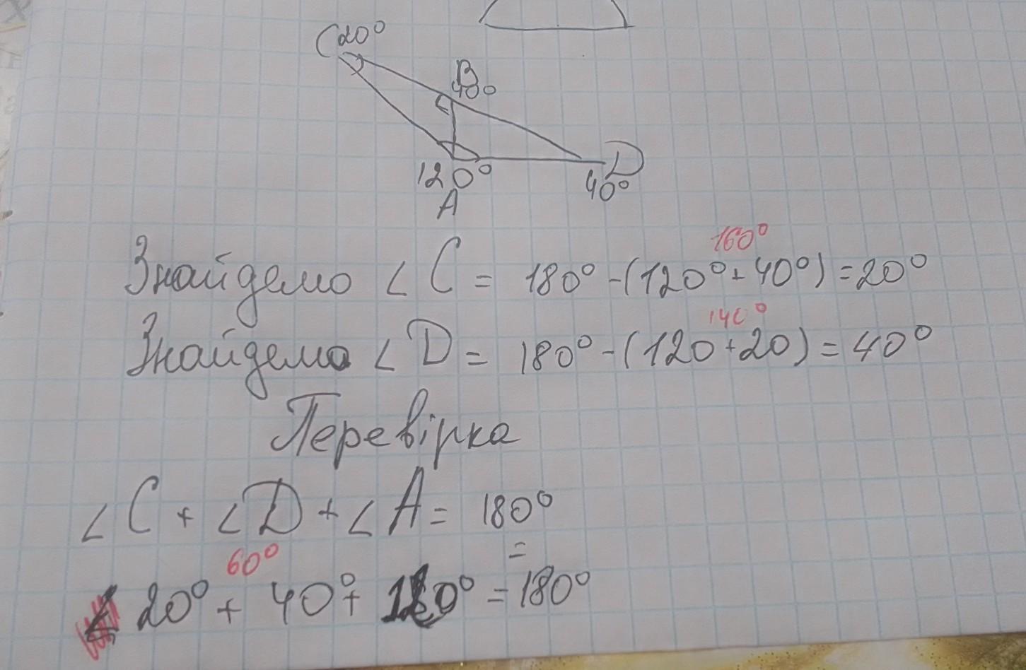 Один із кутів трикутника дорівнює 120°. Висота й бісек- триса, проведені з вершини цього кута, утворюють кут, який дорівнює 40°. Знайдіть невідомі кути трикутника.
