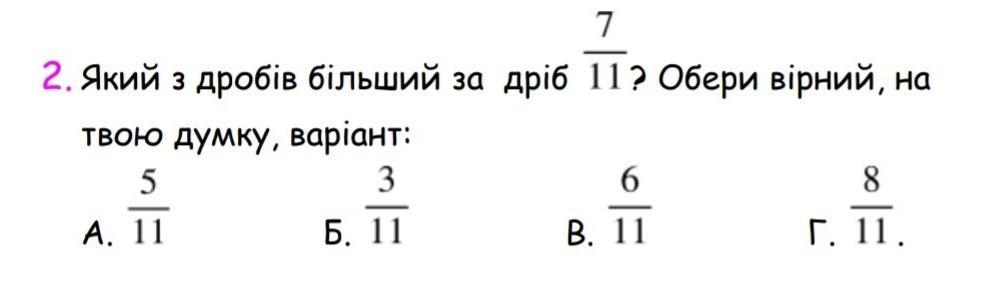 Условно, дробь 7/11, можна представить как 7 кусочков пирога, по скольку знаминатель везде одинаковый, то просто выбираем дробь с большим числителем