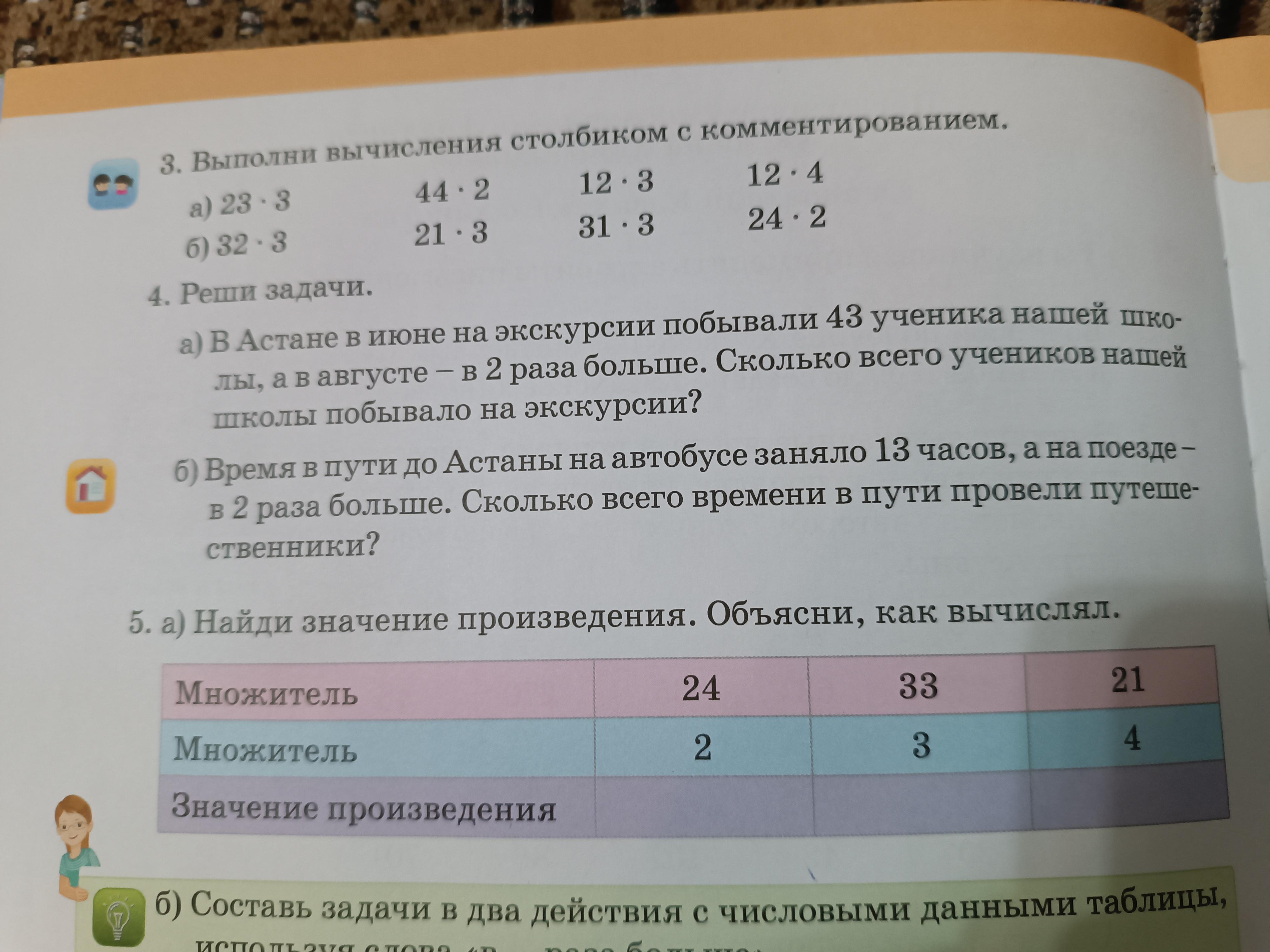 Реши задачу #4 (б) Время в пути до Астаны на автобусе заняло 13 часов, а на поезде в 2 раза больше. Сколько всего времени в пути провели путешественники?