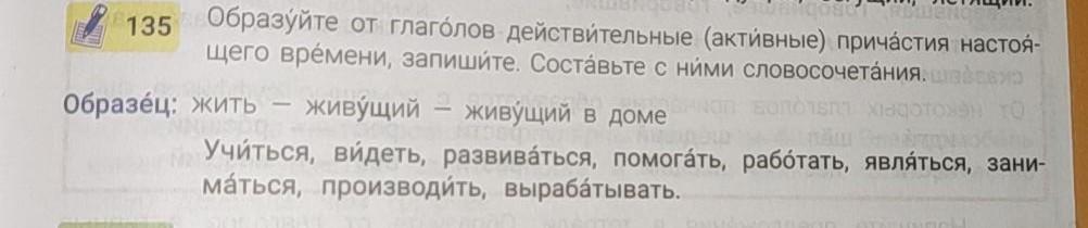 135 Образуйте от глаголов действительные (активные) причастия настоя- щего времени, запишите. Составьте с ними словосочетания.