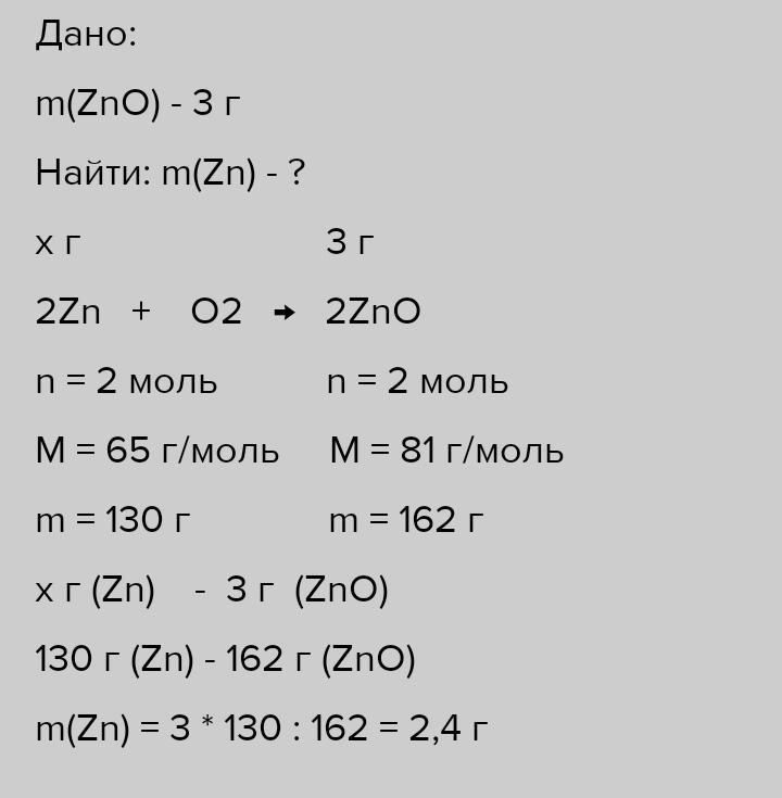 Яка маса цинку вступила в реакцію 3 киснем, якщо в результаті реакції утворилось 3 г цинк оксиду. (+)