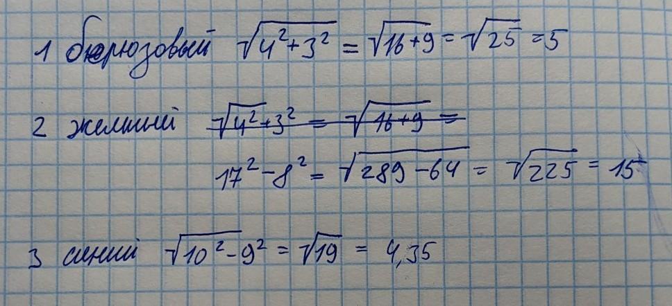 по теореме Пифагора, сумма квадратов катета ровна квадрату гипотенузы