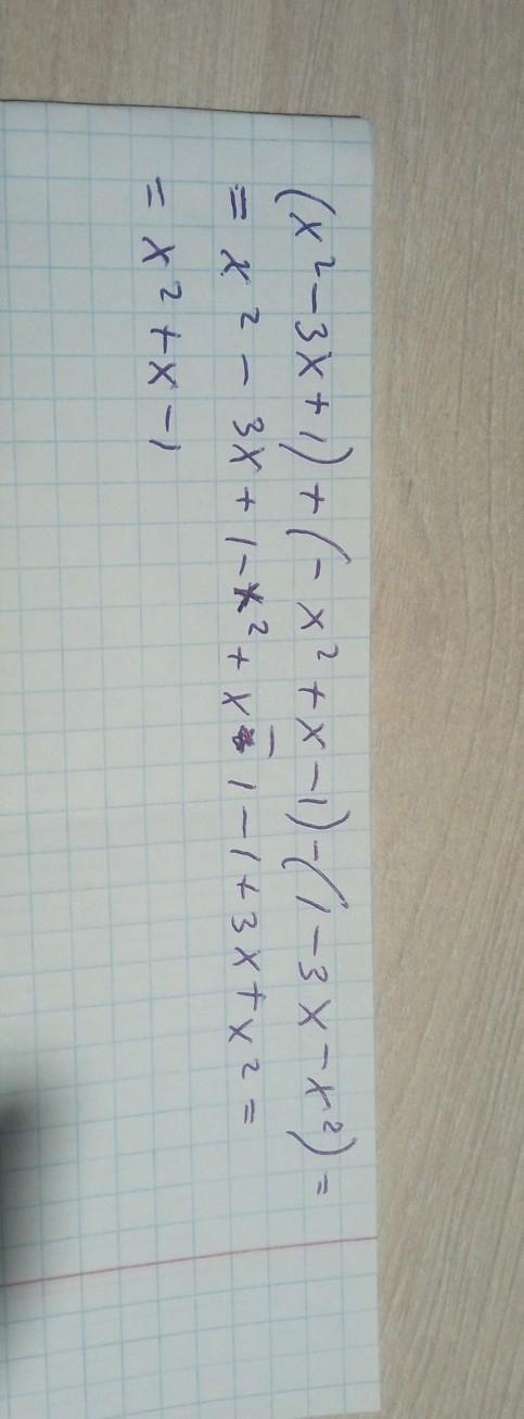 5. Запишіть у стандартному вигляді многочлен - (x ^ 2 - 3x + 1) + (- x ^ 2 + x - 1) - (1 - 3x - x ^ 2)
