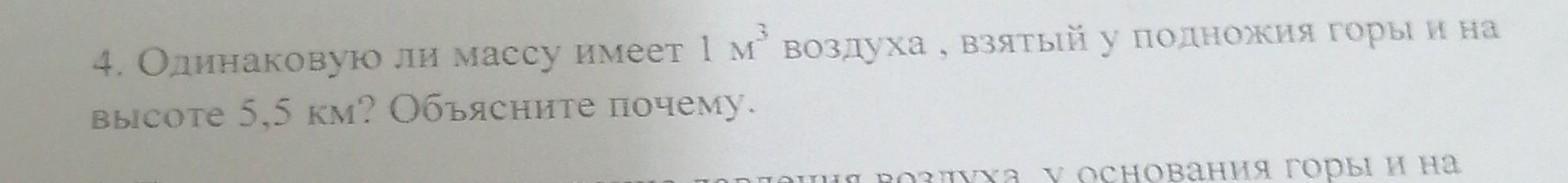 4. Одинаковую ли массу имеет 1 м воздуха, взятый у подножия горы и на высоте 5,5 км? Объясните почему. торы 110