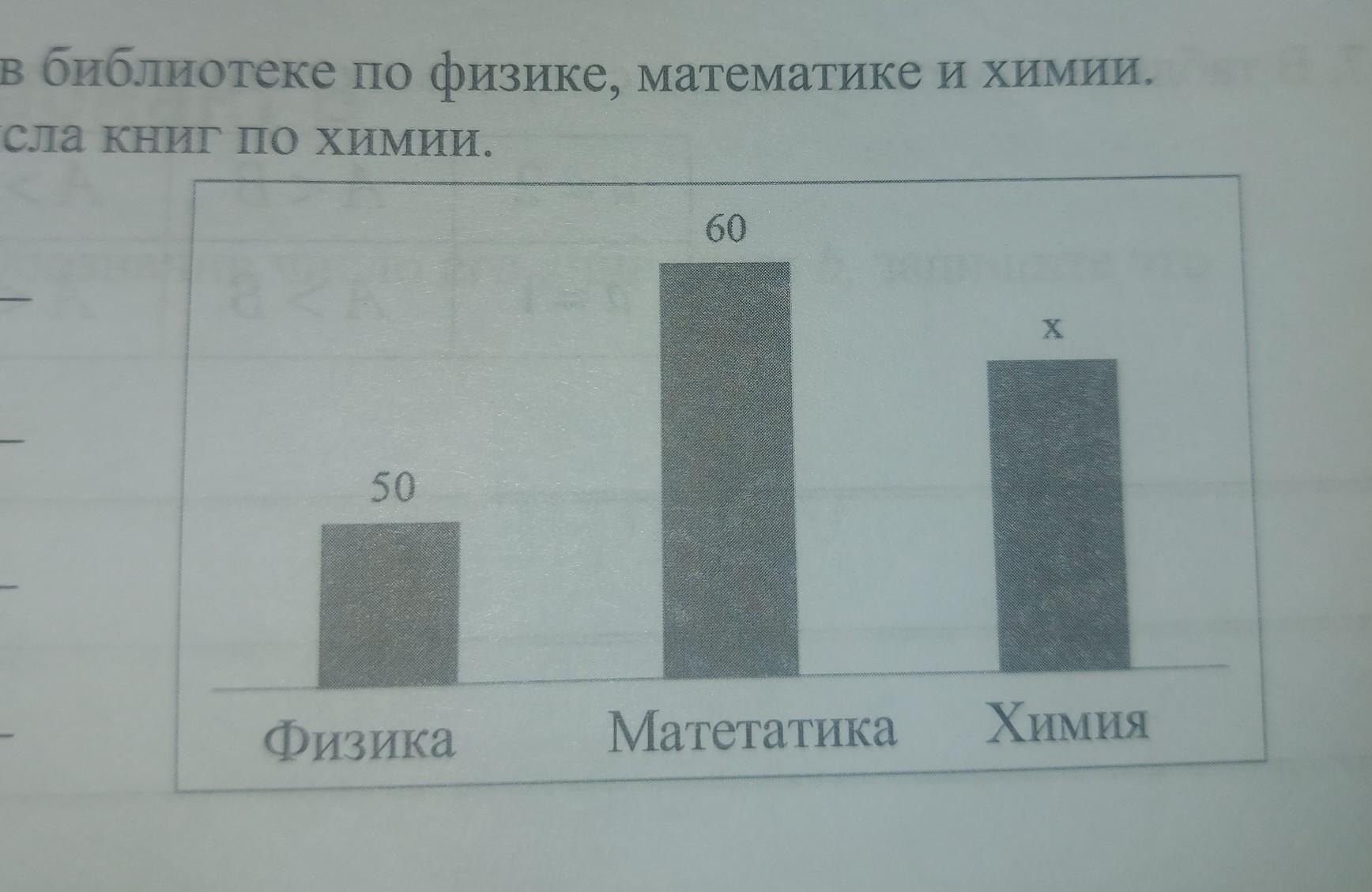3. На диаграмме указаны количества книг в библиотеке по физике, математике и химии. Запишите неравенство относительно числа книг по химии.