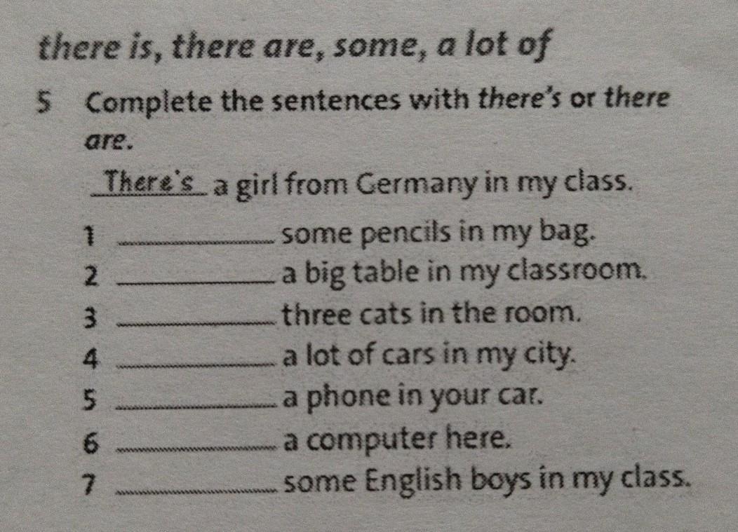 1. There are 2. There is 3. There are 4. There are 5. There is 6. There is 7. There are