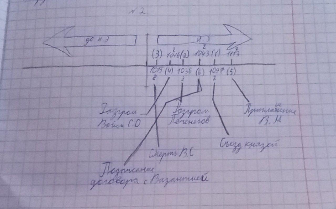 Объяснение: смотри. По сути изначально ты просто рисуешь рисуешь обозначение: До нашей эры, и время нашей эры(у меня стрелки). Ниже ты чертишь отрезок с точками лет (у меня черточки). Далее ты подписываешь года, номера вопросов(по желанию) и конечно же названия событий. Если появятся вопросы, то пиши в комментарии. ну а я думаю что если что ты можешь просто посмотреть картинку. удачи пупс!!)