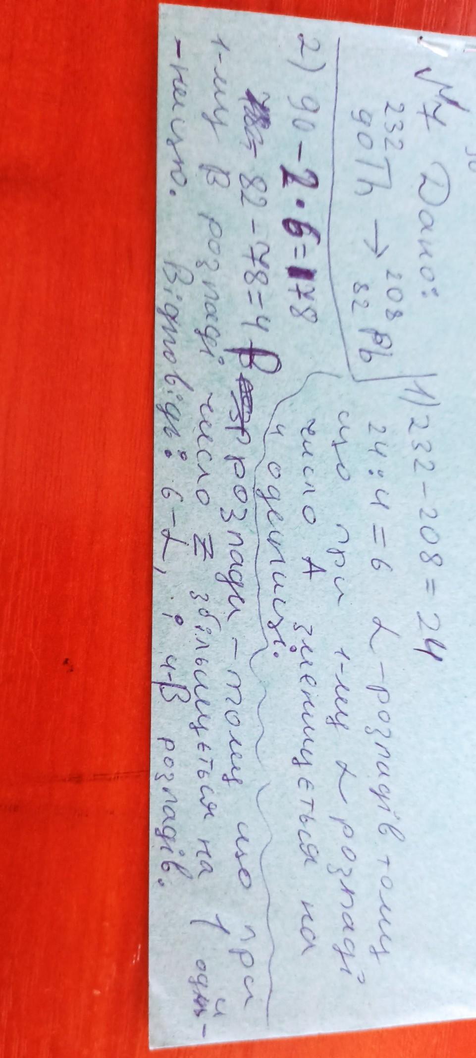 У результаті послідовної серії радіоактивних розпадів торію 232 90 TH перетворився у стабільний Ізотоп свинцю 208 82 плюмбум. Скільки Альфа і бета-розпадів відбулося при цьому утворені?