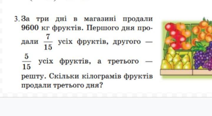 1) 1\15*7=7\15=4480(кг)-продали першого дня;