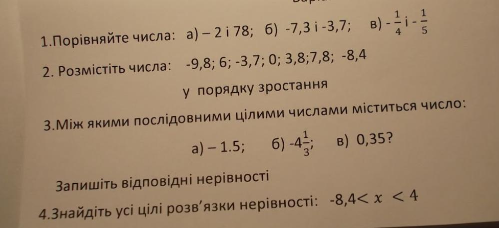 №1 а) -2<78 б) -7,3<-3,7. в) -1/5> -1/5