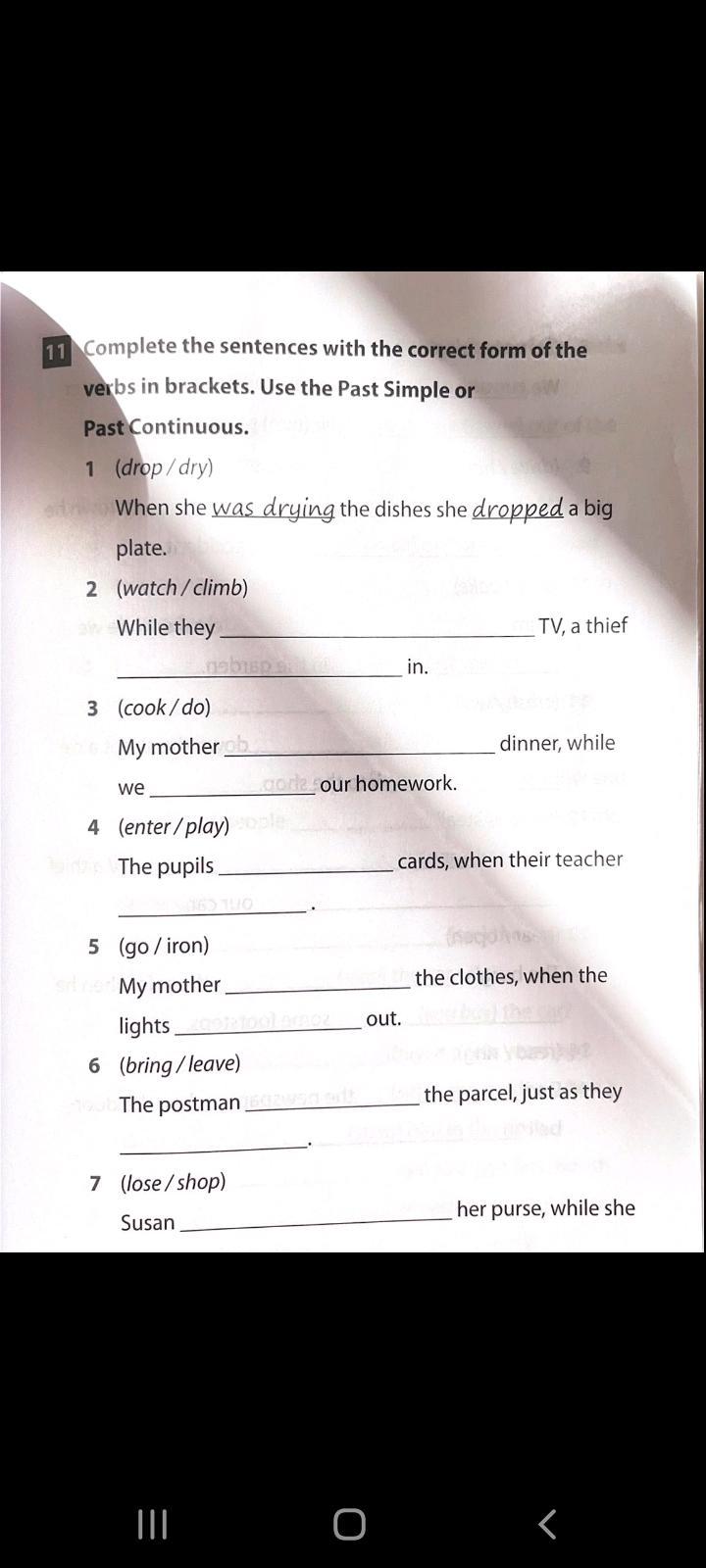 2. 1 Watch 2 climb . 3 . Cook 2 do . 4 . enter 2 play . 5 iron 2 go . 6 leave 2 bring . 7. shop
