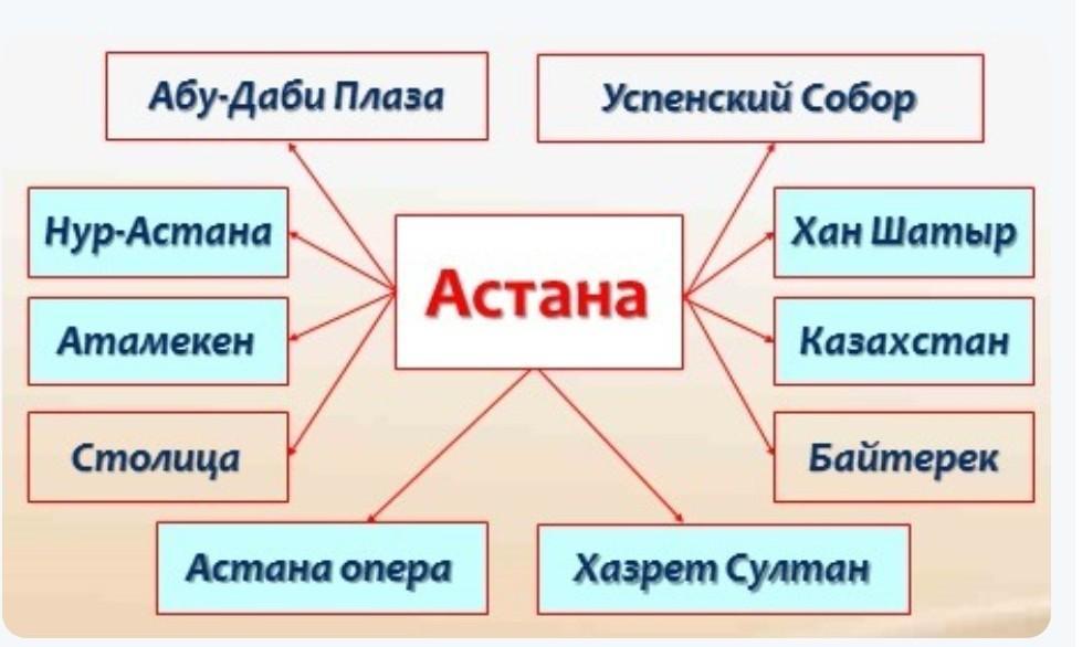 Астана:сәнді,бас қала,дамыған,кере мет,сәулетті,танымал, әдемі,заманға сай,улкен.