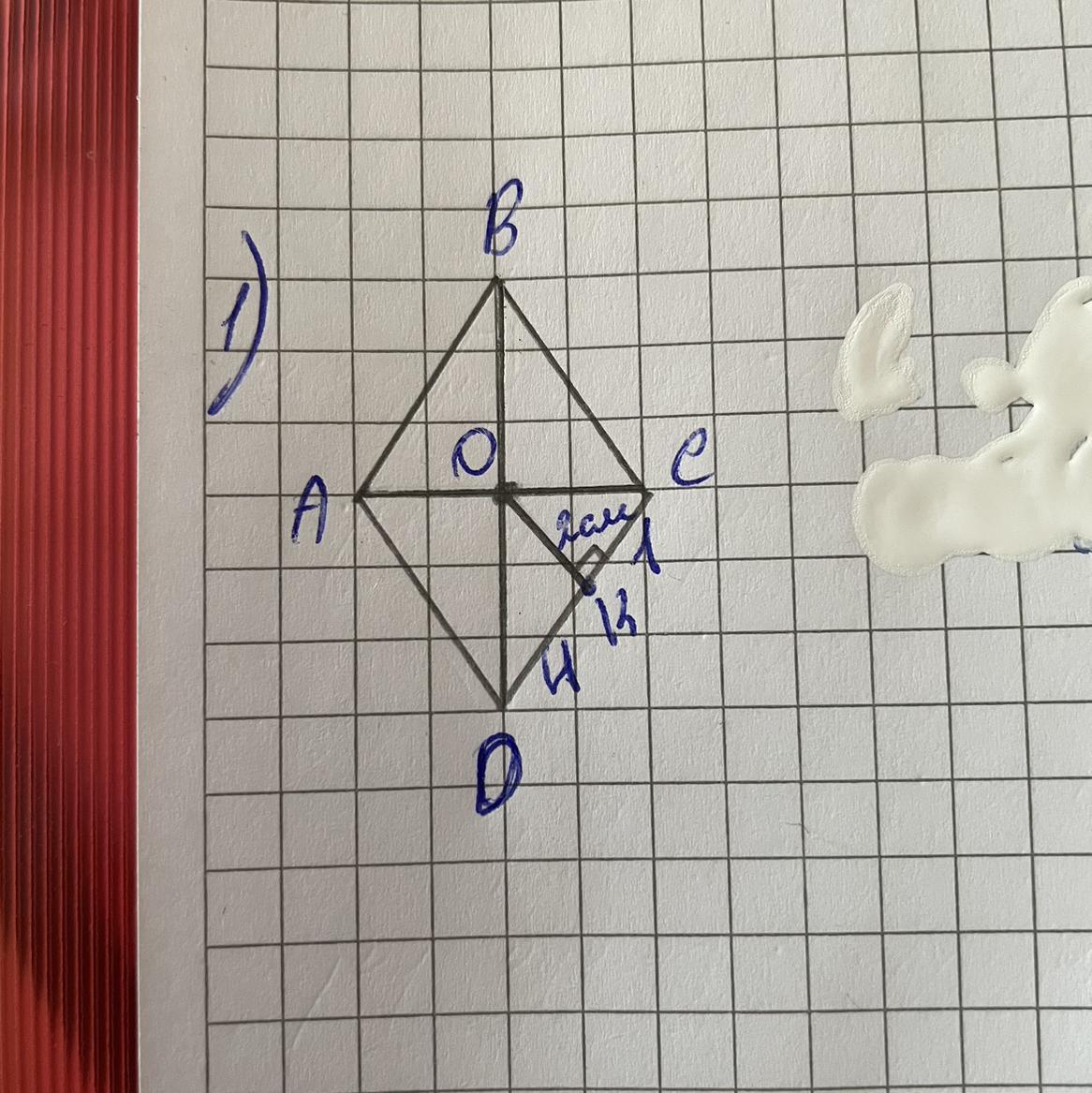 Перпендикуляр, опущений із точки перетину діагоналей ромба на його сторону, дорівнює 2 см і ділить цю сторону на відрізки, які відносяться як 1:4. Знайдіть діагоналі ромба.