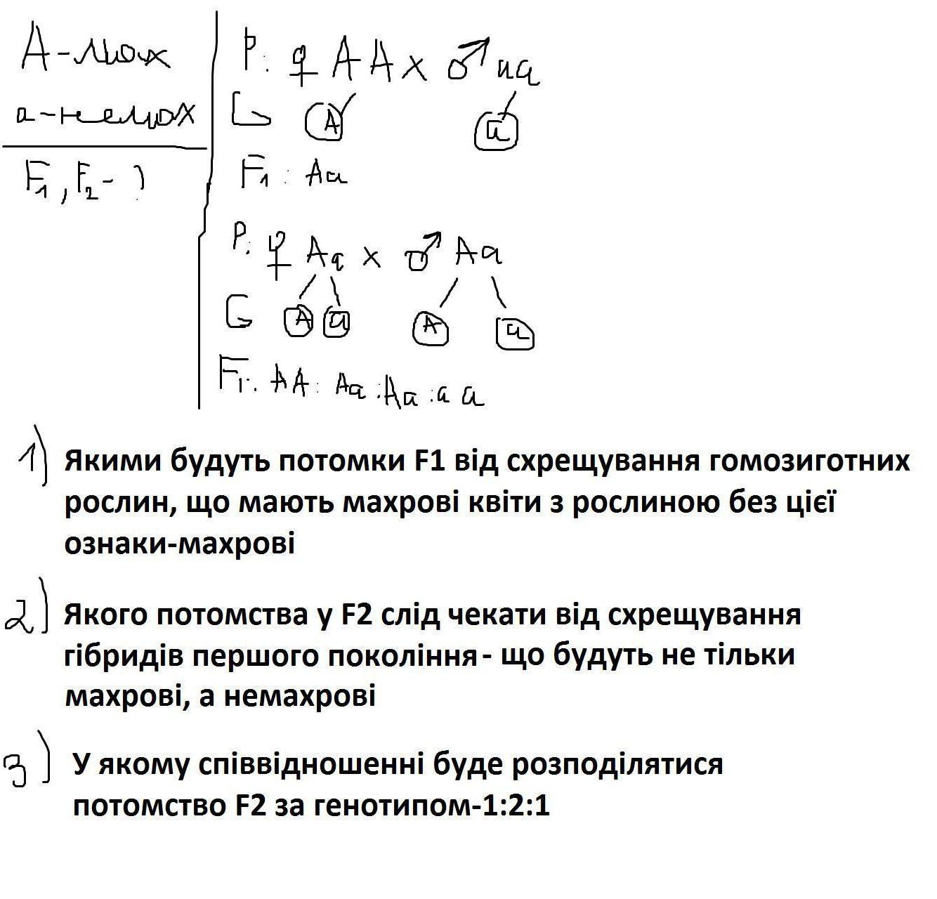 мають махрові квіти з рослиною без цієї ознаки? Якого потомства у другому