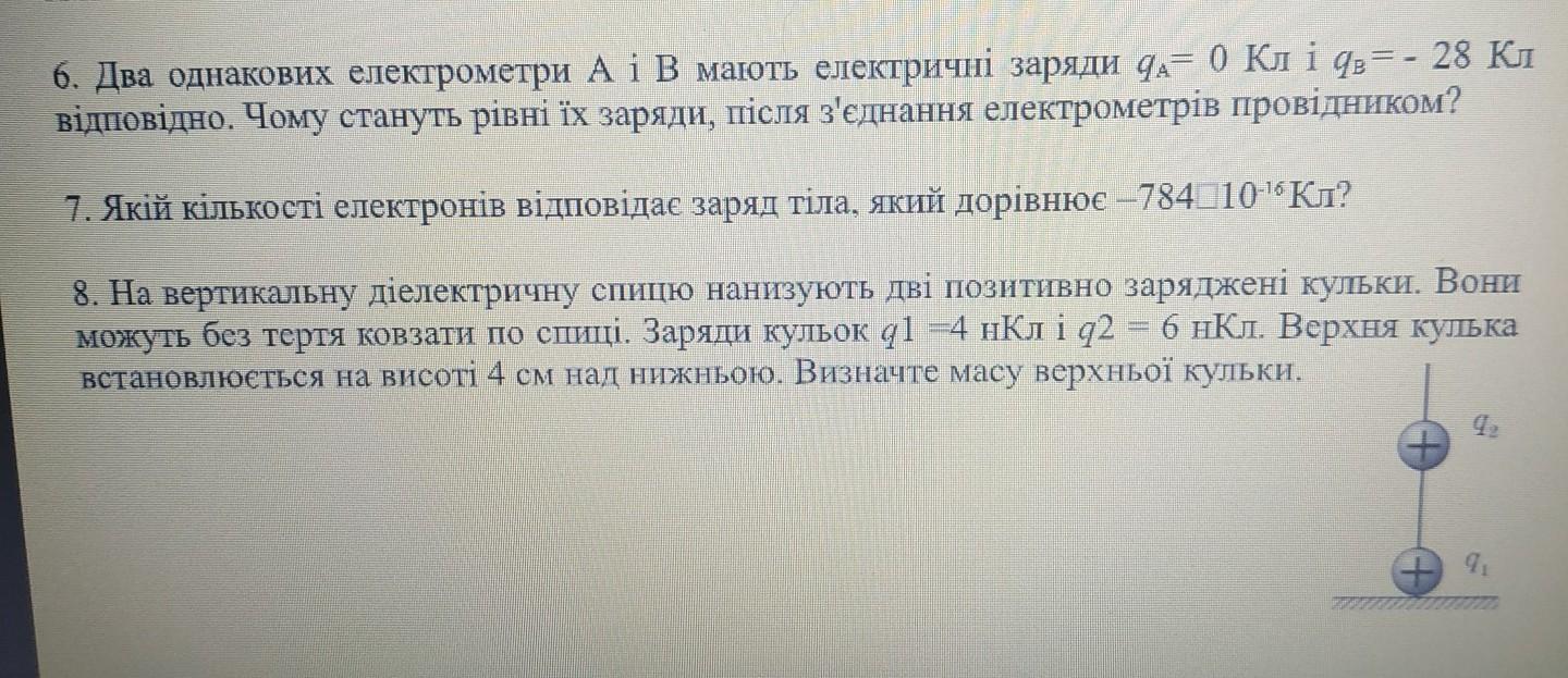 6. Два однакових електрометри А і В мають електричні заряди 9 = 0 Кл i 98- - 28 Кл відповідно. Чому стануть рівні їх заряди, після з'єднання електрометрiв провідником, 791 10.16 TCсррчнооооо пожалуйстаааа