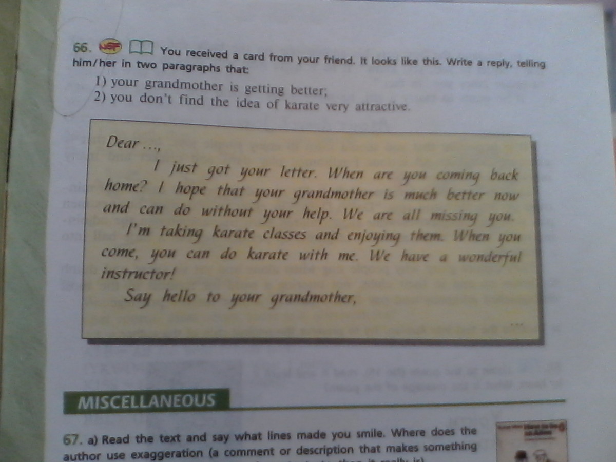 Thank you for your letter and thank you for your sympathy. My grandmother is feeling better now. I am happy, that she can do anything without my help.
