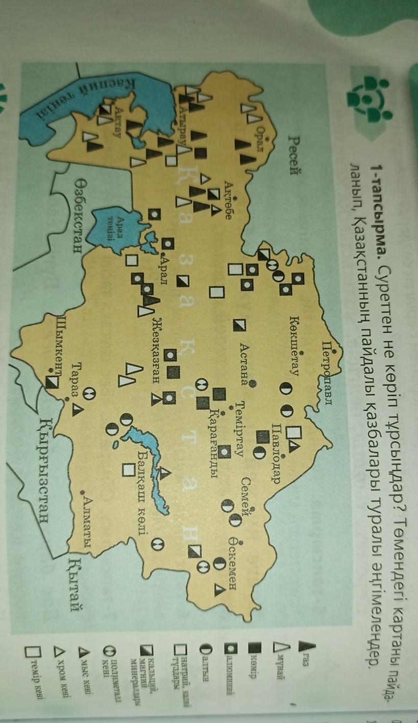 қазақ жерінің қазба байлықтары өте мол.Қазақстанның қазба байлығы арқылы біз көмір,құм,темір,иұнай таба аламыз.біздің қазба байлығымызды пайдаланатын елдерде өте көп.мәселен біз көмыір арқылы үйді жылытып жылы жерде отырамыз.темір арқылы алыс жерді жақын қылар көлік,ұшақ және т.б да заттар бар.ал құм арқылы семент жасап үй, монша жасай аламыз
