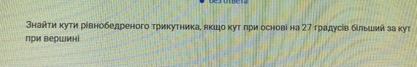 пусть х - вершина треугольника, тогда х+27 угол основания, при основании 2 угла они равны, значит