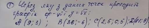 Через точку С(2,5;0.5) не проходит, так как 0,5≠√2,5.