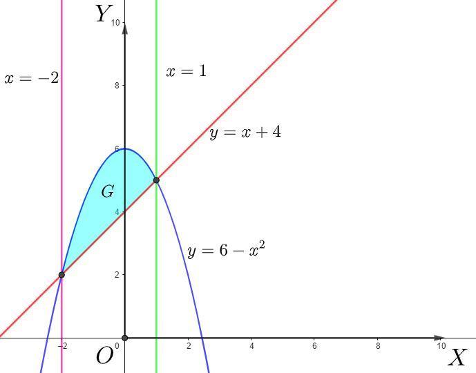 Площадь фигуры ограниченной линиями равна 4,5 квадратных единиц