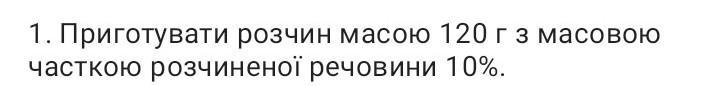 приготувати розчин масою 120г з масовою часткою розчиненої речовини 10%