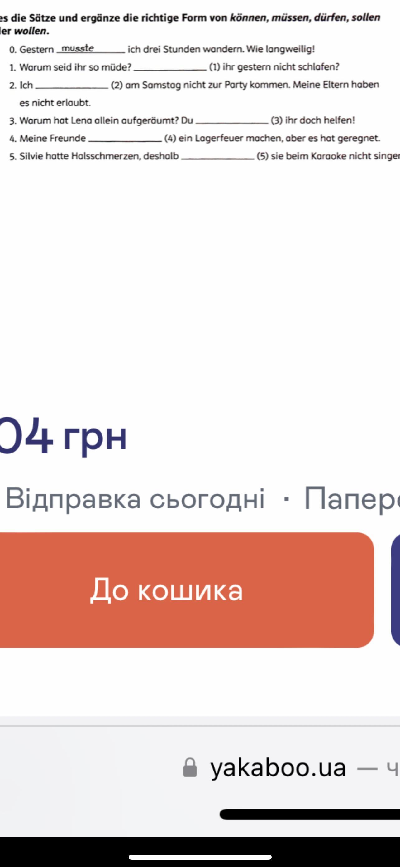 Lies die Sätze und ergänze die richtige Form von können, müssen, dürfen, sollen oder wollen.