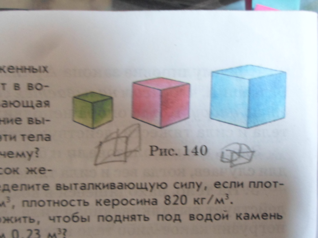 на какое из тел изображенных на рисунке,действует наибольшая выталкивающая сила? изменится ли значение выталкивающей сила, если эти тела погрузить в керосин?почему?