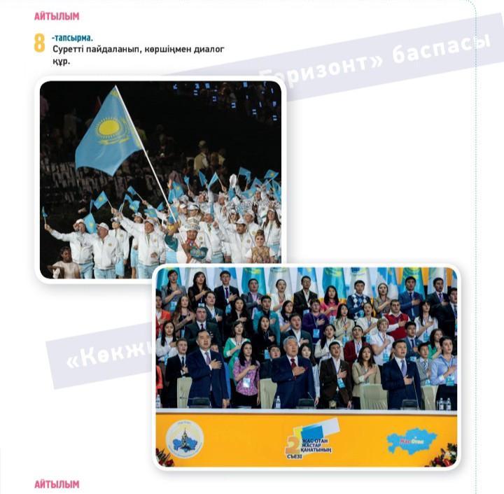 1 Балдар Казакстан туын котерип тур 2Президент Нурсултан Нарбаев пен бари Ануран айтып жатр