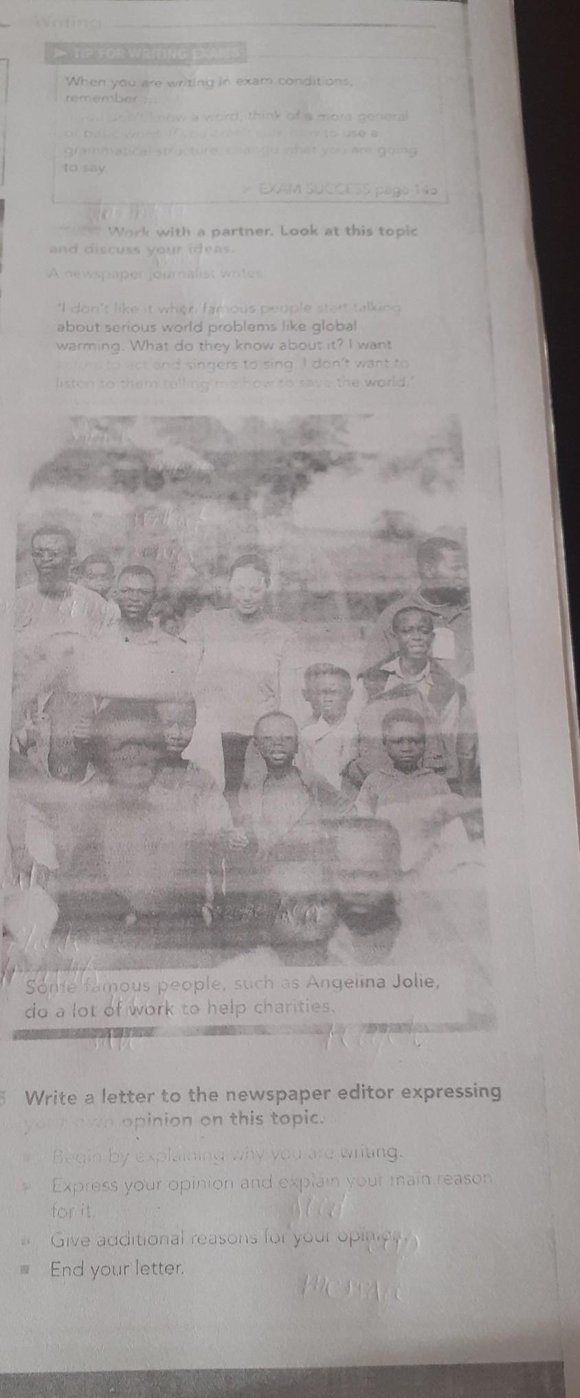❗❗❗Work with a partner. Look at this topic and discuss your ideas. TONA A newspaper journalist writes! 'I don't like it when famous people start talking about serious world problems like global warming. What do they know about it? I want actors to act and singers to sing. I don't want to listen to them telling me how to save the world.❗❗❗
