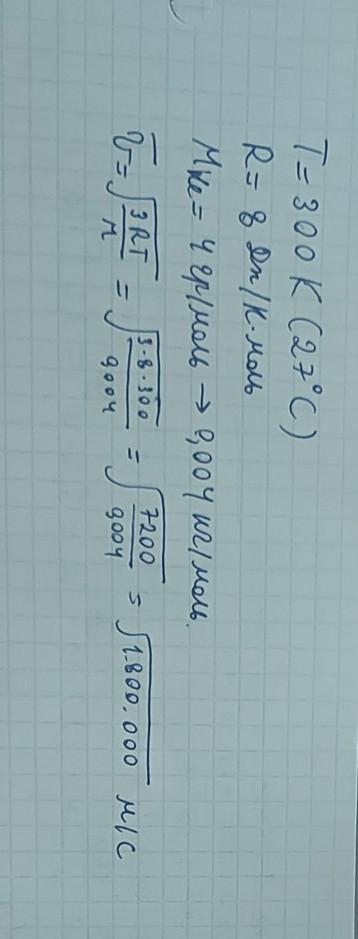 V=sqrt(3*R*T/M)=sqrt(3*8,31*300/4*10^-3)=1367 м/с